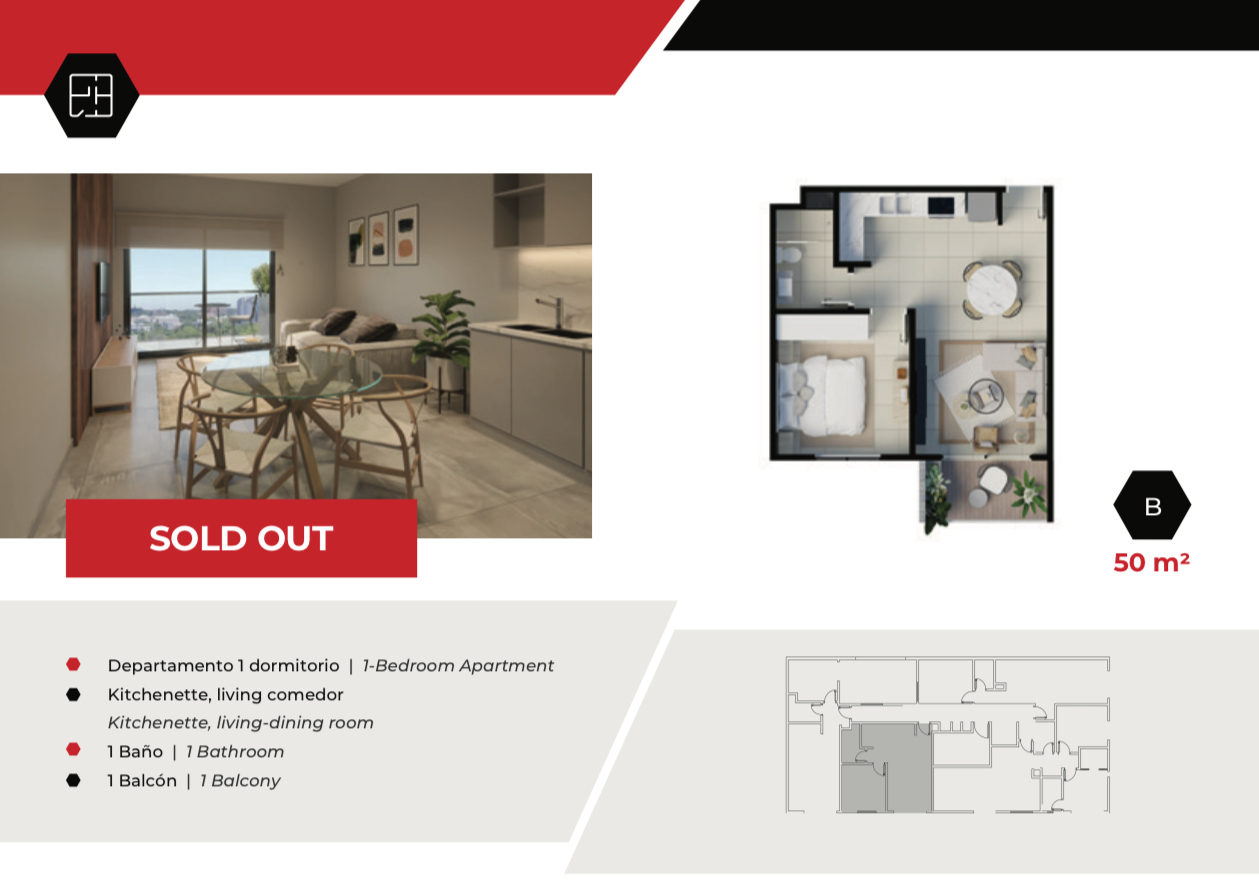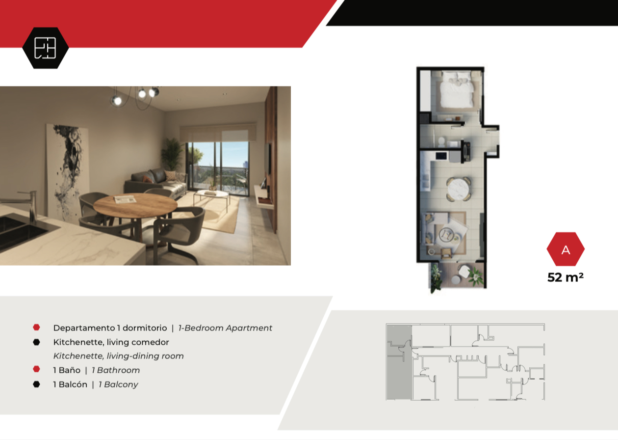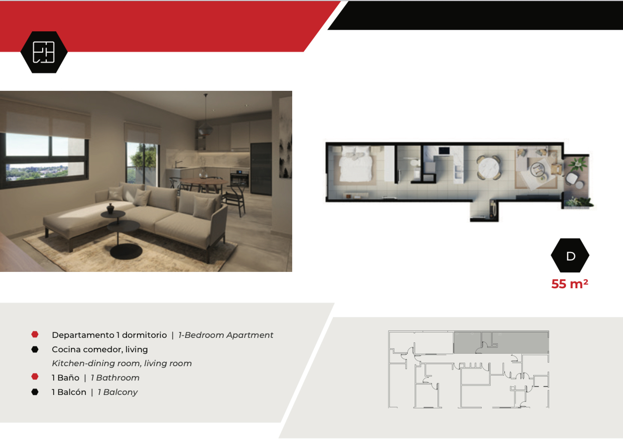 • Departamentos de 1 habitación | 50 a 55 m² | desde USD 92.500